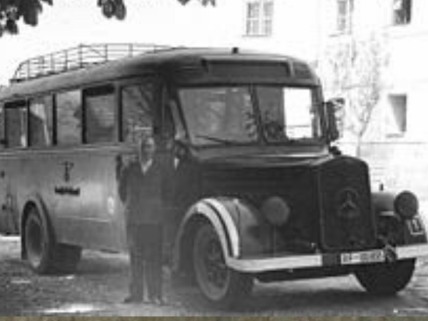 Les futures victimes arrivent dans des bus entièrement peints en gris. Déchargées dans le garage en bois, à l’abri des regards, elles rentrent dans le bâtiment par une petite porte.
