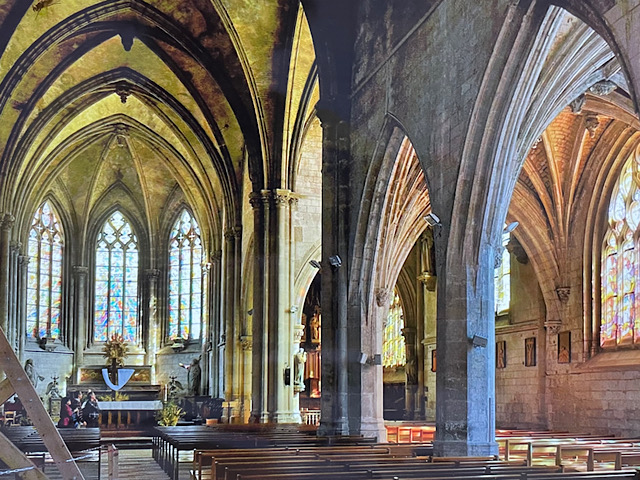 J’ai visité cet édifice en pleine canicule. C’était l’occasion rêvée pour me rafraîchir un peu et admirer les retables des chapelles latérales et les vitraux contemporains. Attention, l’église ouvre ses portes à 14 h !