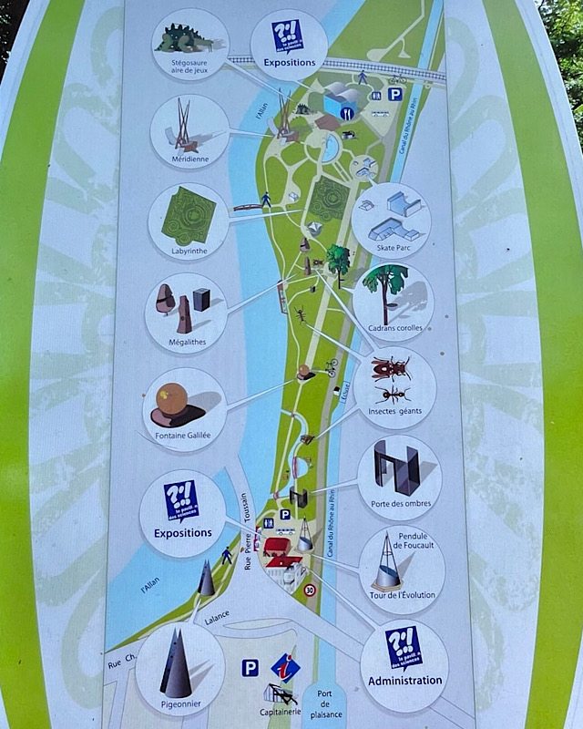 Voici un plan du parc du Près-la-Rose. Ce sympathique panneau indique l’emplacement des différentes attractions.
